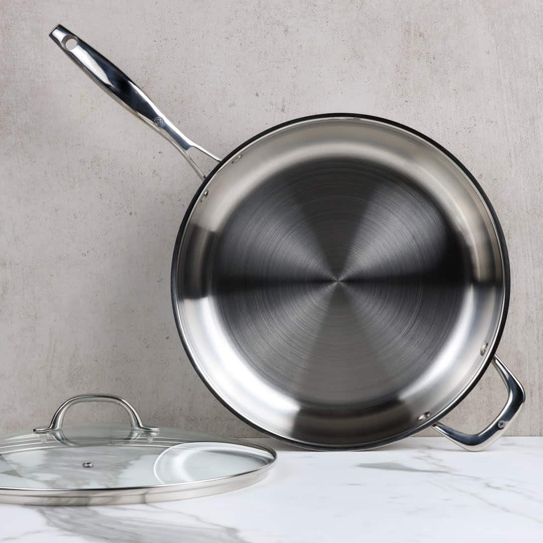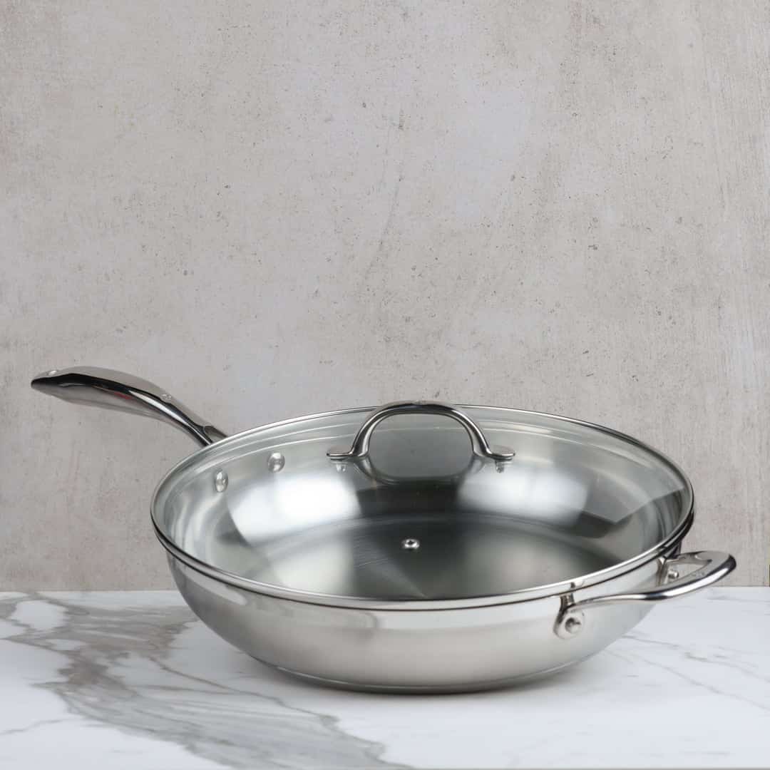 There are some special features to love in this roomy 4.8L saute pan. The rims are slightly flared, so you can pour without making a mess. The riveted handles provide extra stability when cooking. And, it’s suitable for all stovetops (including induction) or even the oven. One last thing—it’s dishwasher safe!