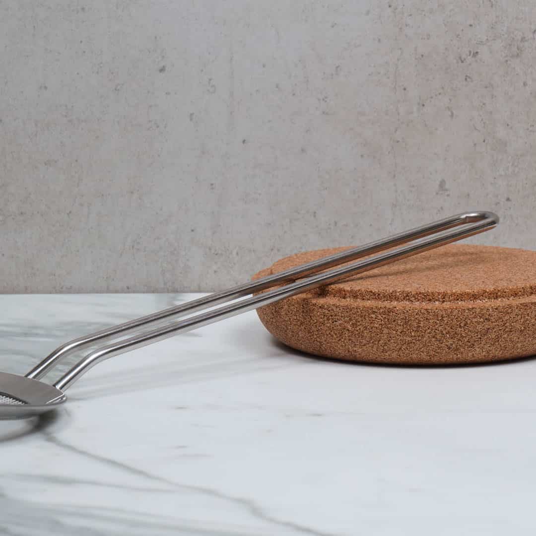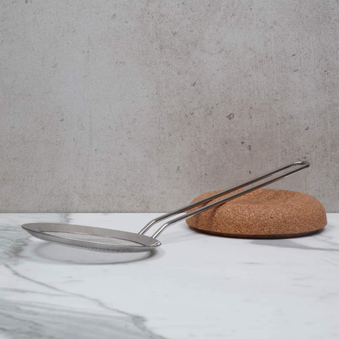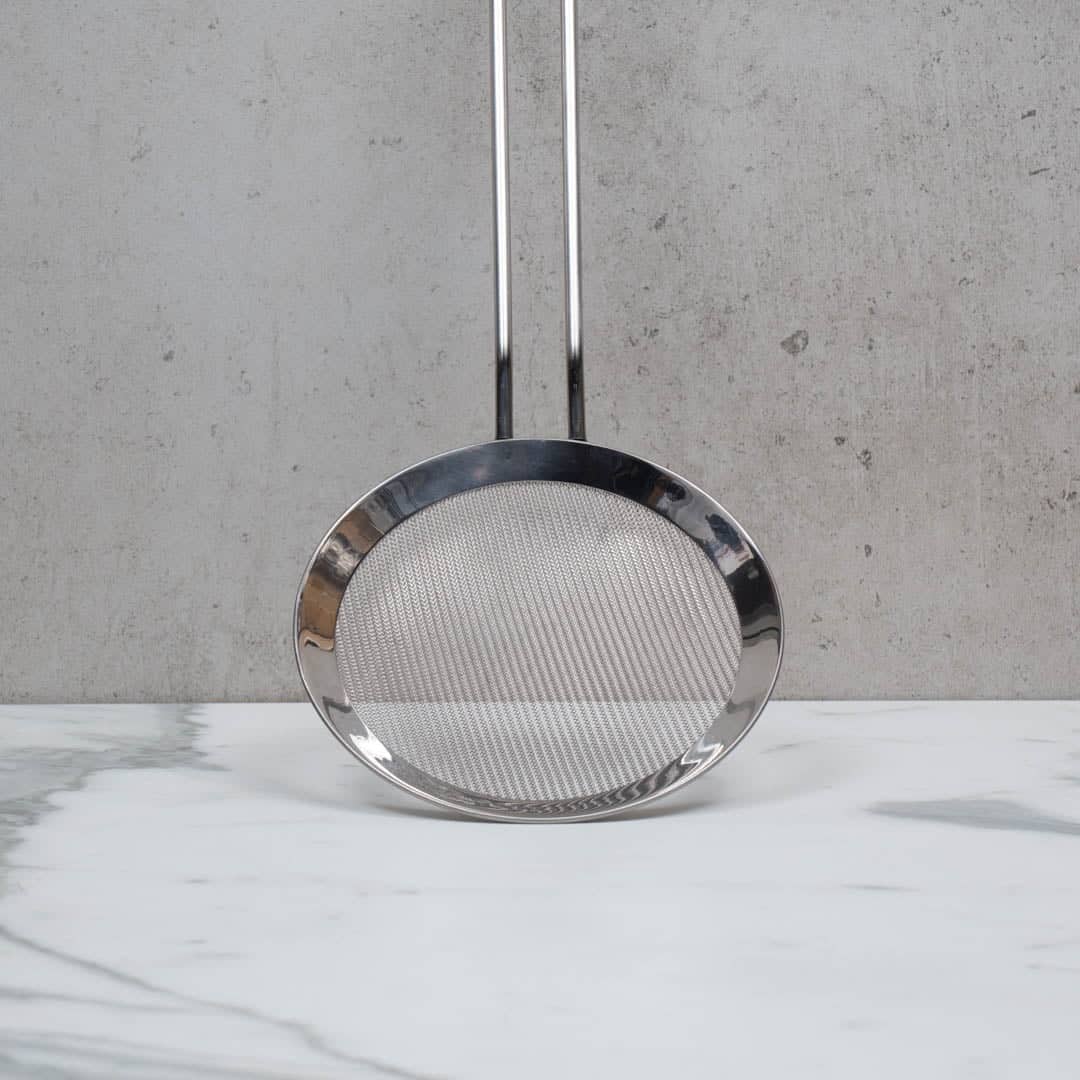 Don't be fooled by its simple design: this elegant skimmer has been designed by professionals, for professionals. It's both practical and durable. The long handle allows you to reach deeper while keeping your hand safe. With its 1 mm fine mesh, you can achieve restaurant-quality texture and presentation. And, of course, the handle is designed for easy hanging, making it convenient to keep your kitchen neat and tidy! We knew you would love it!