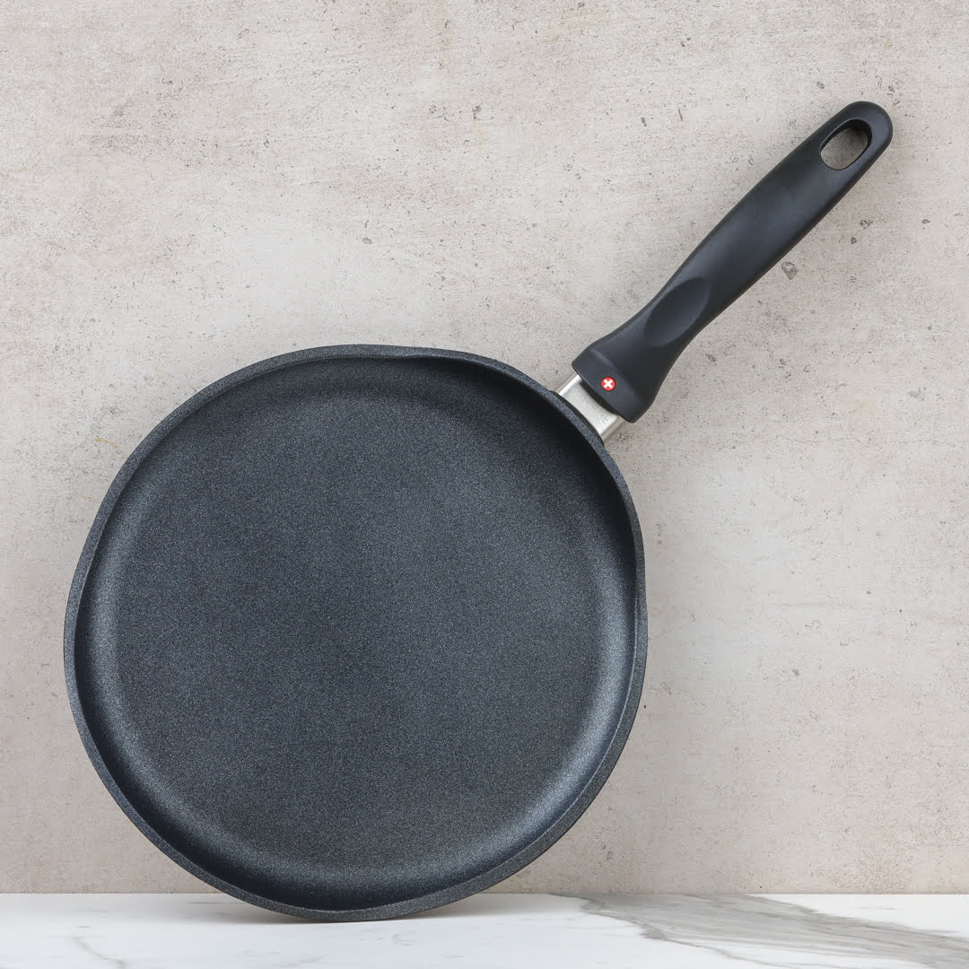 Everyone can be a morning person when homemade crepes are involved. This Swiss Diamond crepe pan is just the tool you need. The low sides and round non-stick surface are specially designed to make evenly browned and easily flipped golden crepes. The comfy handle stays cool to the touch and the thick aluminium body won’t warp, tip or spin. If crepes aren’t your thing, you’ll still find this versatile pan helpful for fried eggs, French toast and fluffy omelettes. Are you ready to make some smiles in your kitchen?