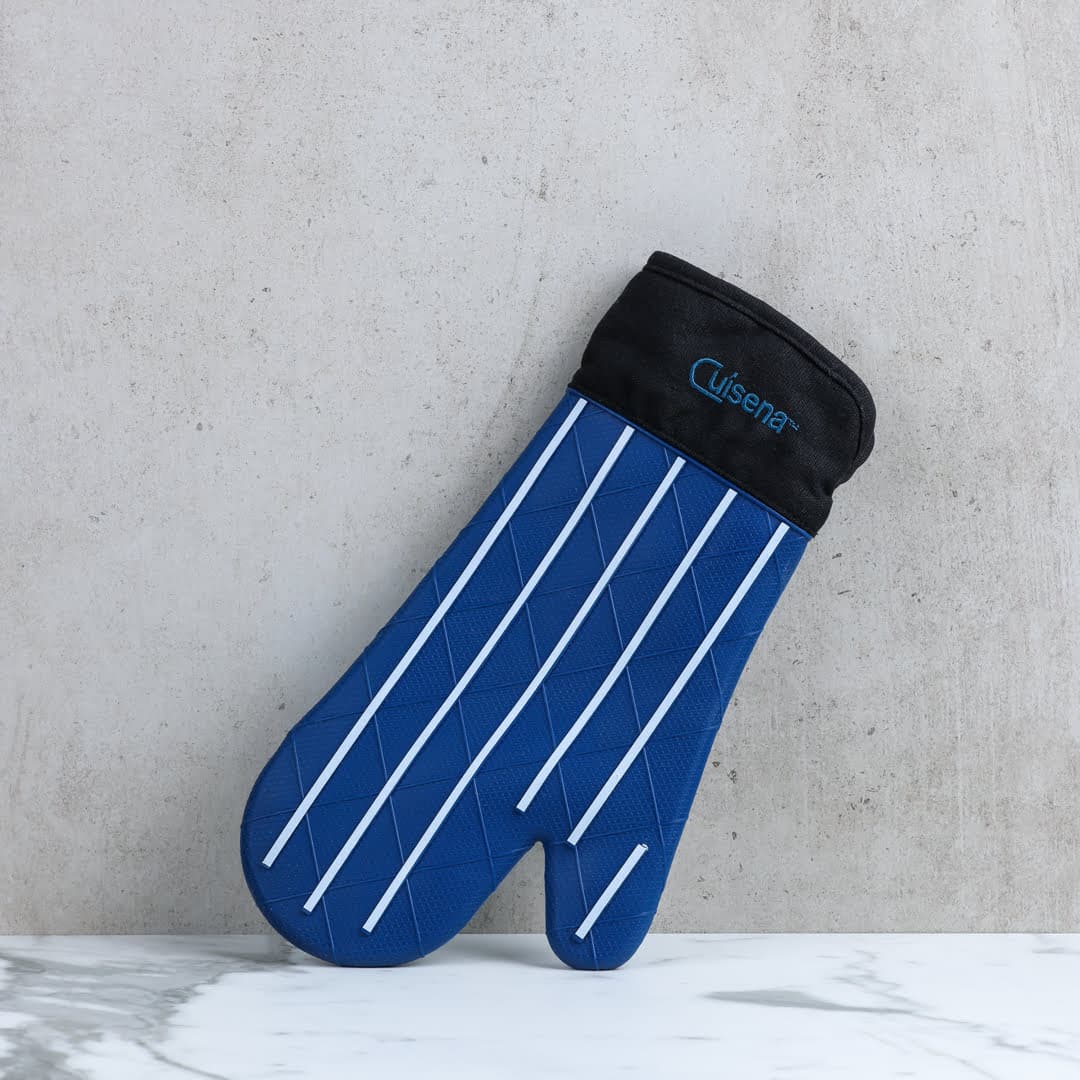 Cuisena Silicone/Fabric Oven Glove – Blue Stripe (Pair)