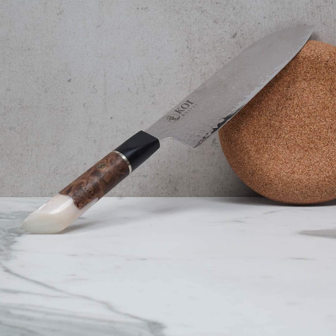 Koi’s Knives embrace nature’s beauty with master craftsmanship, making each knife as unique as the fingerprints of time. Each knife handle is crafted from organic Australian wood, reflecting nature’s individuality. Therefore, the images of handles will vary from knife to knife.