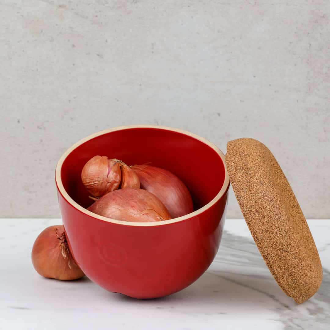 Shaped like a sweet little acorn, this garlic pot from Emile Henry is such a delight! Store your garlic, ginger and small onions inside the glazed ceramic base. Place the contoured cork lid on top to create a dark environment that slows germination, keeping your produce beautifully fresh. Like all Emile Henry products, this pot is made in France using the ceramic techniques passed down through six generations of the Henry family. Complete the set with the larger Grande Coupe de Conservation to store your fruit and root vegetables.